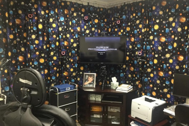 To investigate speech production, the Speech Kinematics and Acoustics Lab at Vanderbilt uses motion capture technology to quantify speech motor performance. The lab is equipped with a six-camera infrared motion capture technology (Motion Analysis, Inc.) and a 3D electromagnetic articulograph (AG501; Carstens Medizinelektronik, Germany).