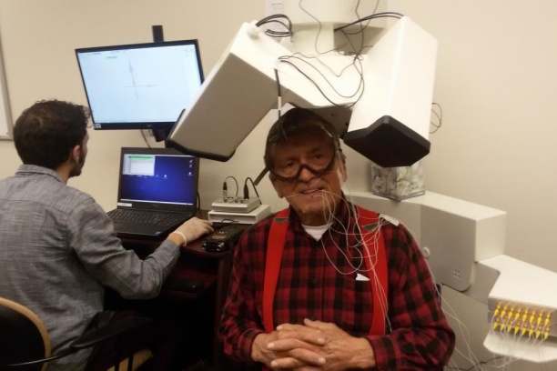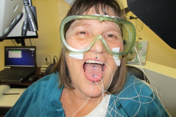 Infra-red cameras are used to track facial motion during speech. The reflective stickers are placed around the mouth and on the jaw, reference stickers are placed on the forehead and nose. In Hollywood the same technology is used to create animation movies such as “The Polar Express”. In our lab, we use the motion capture technology to better understand speech motor performance deficits of speakers with brain diseases, detect subtle changes in motor performance due to medication or behavioral treatments, and track disease progression of degenerative diseases.